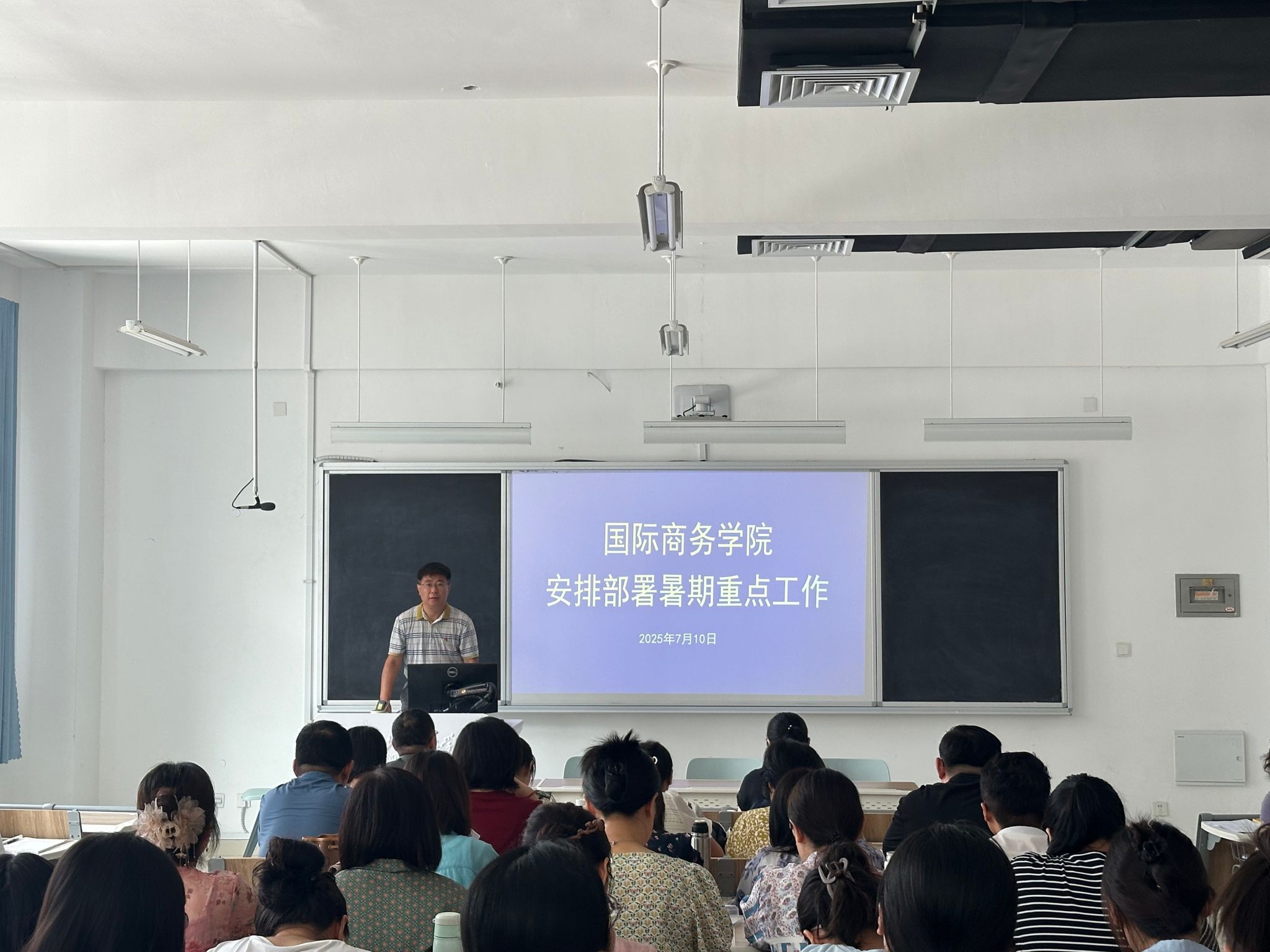 为深入贯彻落实学院第二次党代会精神,国际商务学院于7月8日和10日分别召开副科级及以上人员会议和全体教师会议,全面部署暑期重点工作。