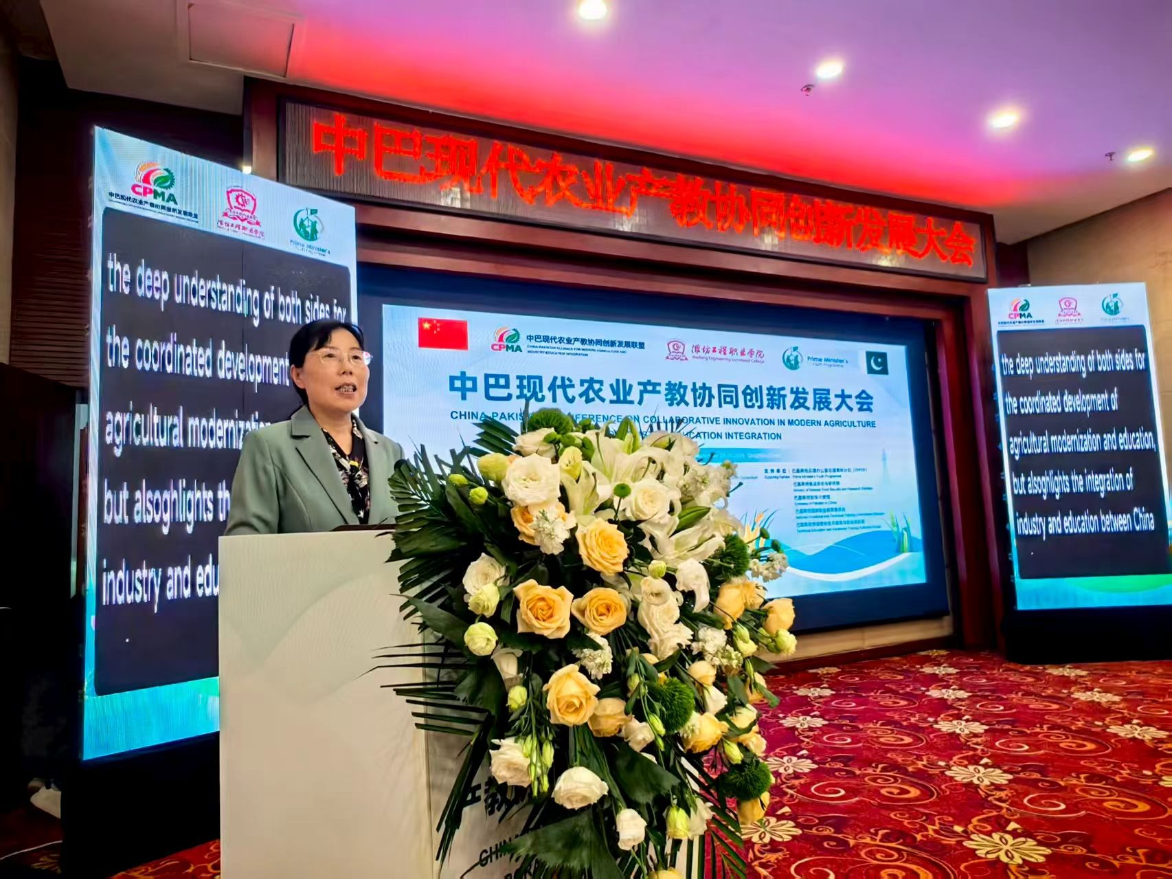 9月29日,中巴现代农业产教协同创新发展大会在青州市举行。巴基斯坦驻华大使馆科技参赞汗·穆罕默德,巴基斯坦旁遮普省技能发展与创业部秘书长纳迪尔·查塔,潍坊市人民政府党组成员、副市长狄波等出席大会。学院副院长陈美霞应邀参会,并在职业教育国际合作案例分享环节作交流发言。