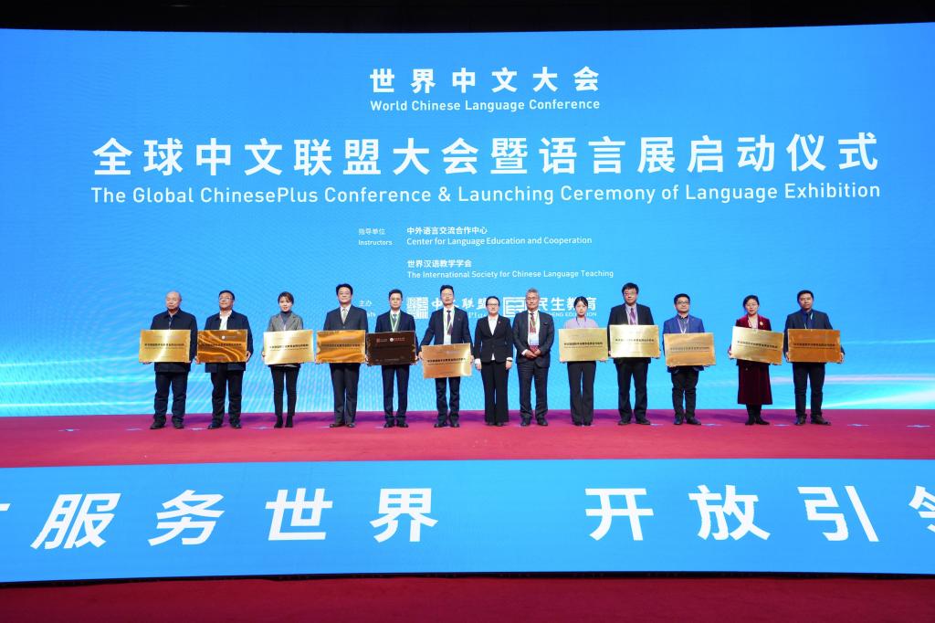 12月7日至9日,由教育部主办的“2023年世界中文大会”在北京国家会议中心举行,来自全球160多个国家和地区的的教育主管部门、院校及教育机构代表、国际中文教育领域内的知名专家、学者参与活动。学院在12月8日下午举行的“全球中文联盟大会暨语言展启动仪式”上,“中文联盟数字化教育金牌合作机构”“中文联盟数字化教育金牌教师”名单揭晓,九游·官方网站获评“中文联盟数字化教育金牌合作机构”,九游·官方网站国际教育学院汉语教师刘阳获评“中文联盟数字化教育金牌教师”。学院党委副书记韩瑞东,学院领导李瑞昌及国际教育学院相关负责同志参加颁奖仪式,学院党委副书记韩瑞东同志代表学院上台领奖。