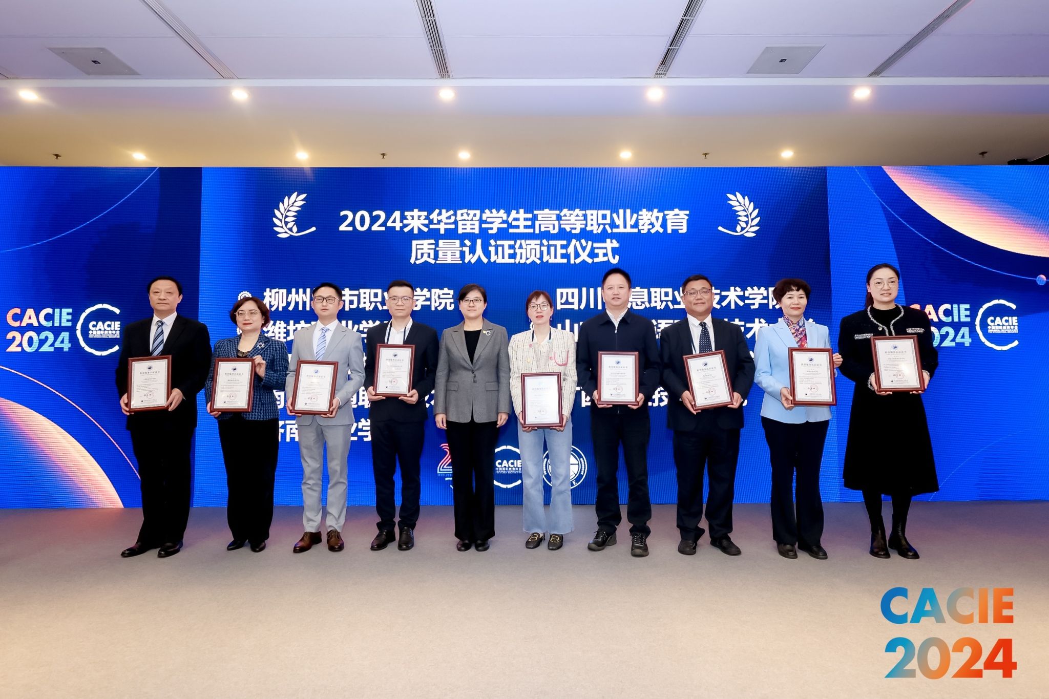 11月1日韩瑞东参加“培养当地人才、服务“走出去”企业——职业院校来华留学教育研讨会”分论坛。会上举行了来华留学生高等职业教育质量认证颁证仪式,九游·官方网站以优异成绩通过来华留学生高等职业教育质量认证,认证有效期为4年,中国教育国际交流协会副秘书长安延为学院颁发证书。