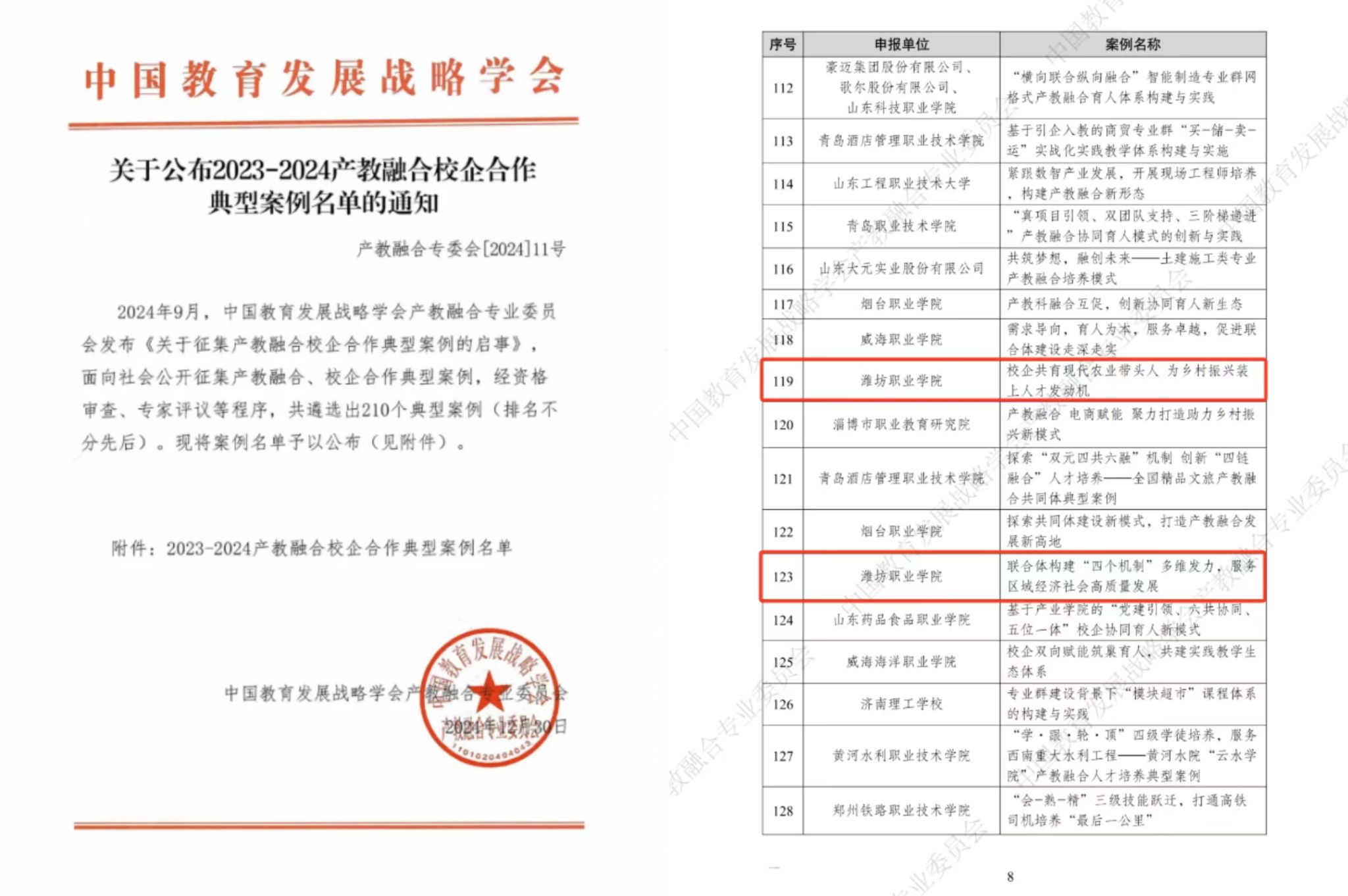 九游·官方网站2个案例入选中国教育发展战略学会产教融合专委会2023-2024年度产教融合校企合作典型案例