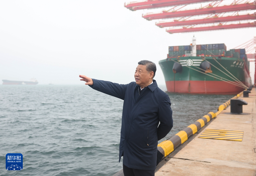 5月22日至24日,中共中央总书记、国家主席、中央军委主席习近平在山东考察。这是22日下午,习近平在日照港考察。