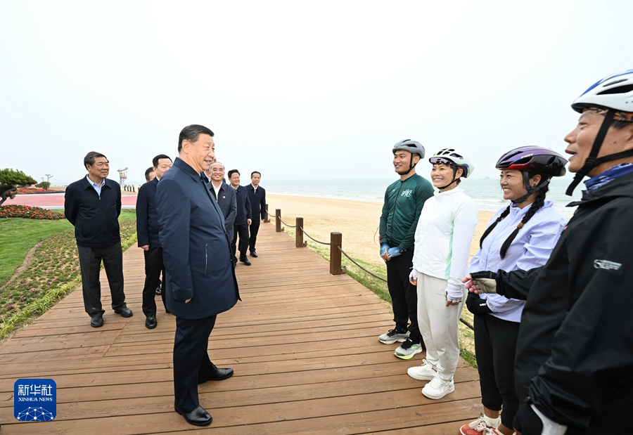 5月22日至24日,中共中央总书记、国家主席、中央军委主席习近平在山东考察。这是22日下午,习近平在日照市阳光海岸绿道同市民和游客亲切交流。