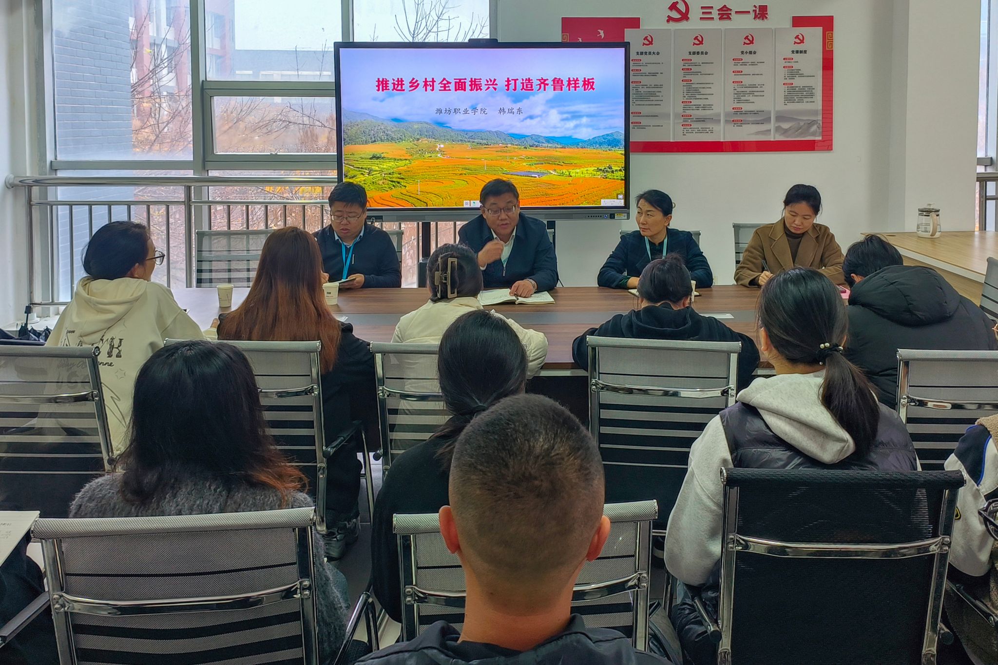 韩瑞东以《推进乡村全面振兴打造齐鲁样板》为题,以党的十八大以来习近平总书记历次来山东考察的重要指示精神为切入点,从乡村振兴的内涵及发展历程、打造乡村振兴齐鲁样板和争做乡村振兴齐鲁样板先行区三个方面,向同学们深入浅出阐述了何为乡村振兴以及国家实施乡村振兴战略的重要意义,并分享了自己求学时期的心路历程,勉励大家要刻苦用心的求真学问,练真本领,响应习近平总书记“年轻人要自找苦吃”“把论文写在祖国大地上”的号召。 随后,同学们围绕专业学习、为人处世、社会实践、职业规划等方面提出了问题和建议,与会学院领导一一回应,并与参会教师、学生代表共同探讨了建议的可行性。会后,同学们纷纷表示一定会珍惜学习机会,以全新的姿态和饱满的热情投入到今后的学习生活中,绝不会辜负师长的期望。