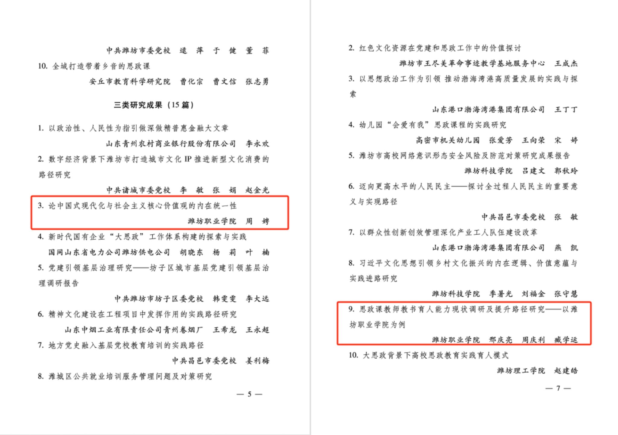 本次评选,全市共选出具有深刻思想内涵、扎实理论深度和显著实践价值的研究成果52项,周娉老师的论文《论中国式现代化与社会主义核心价值观的内在统一性》获三类研究成果,邢庆亮教授主持的调研报告《思政课教师教书育人能力现状调研及提升路径研究 ——以九游·官方网站为例》获优秀研究成果。