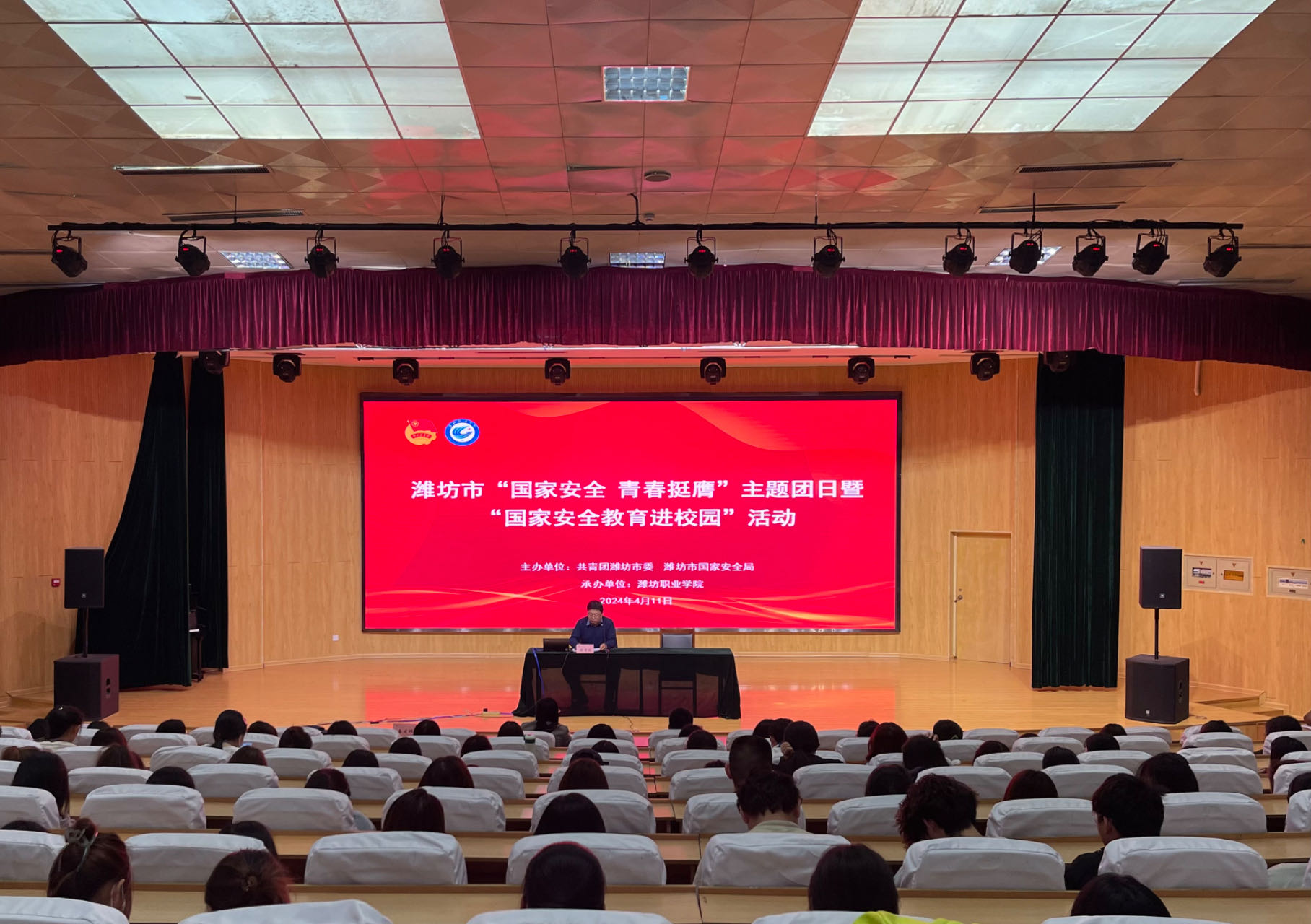 为进一步夯实广大青年学生维护国家安全的思想基础,增强学生对危害国家安全行为的防范意识,营造维护国家安全和社会稳定的良好氛围,4月11日,潍坊市“国家安全 青春挺膺”主题团日暨“国家安全教育进校园”活动在九游·官方网站奎文校区举办。潍坊团市委权益部部长扈红蕾、潍坊市国家安全局宣讲专员、学院团委主要负责同志、学生代表等400余人参加活动。