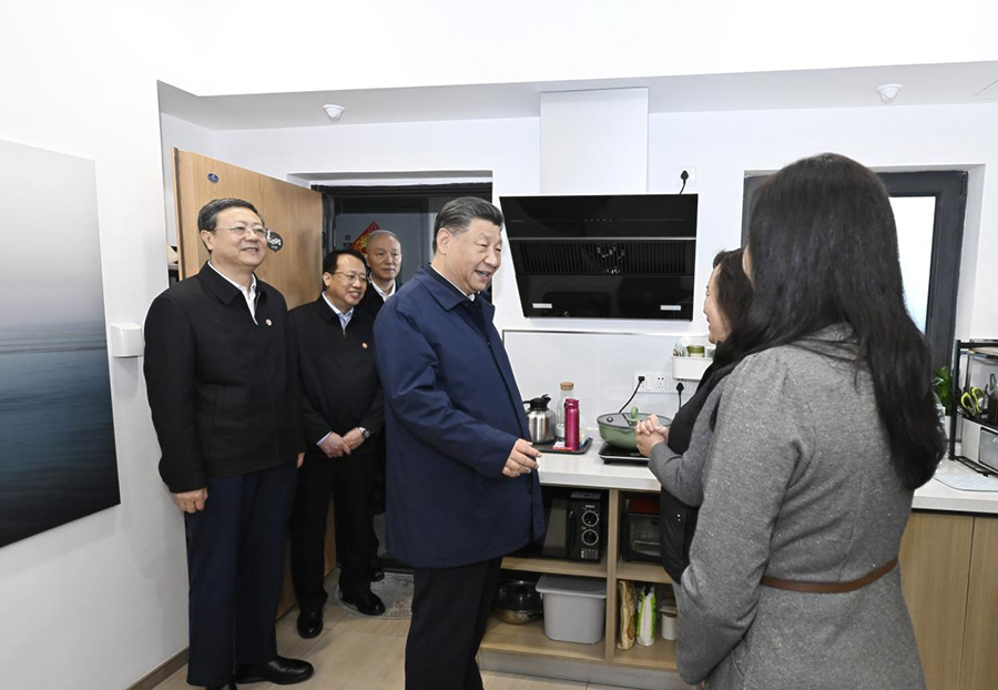 “租金贵不贵?”“不贵,住得很舒服。感谢党和政府,让我在上海有了一个家。”总书记同租住在这里的新上海人郑岚予交流。